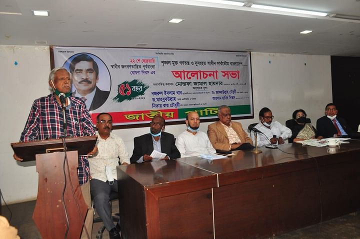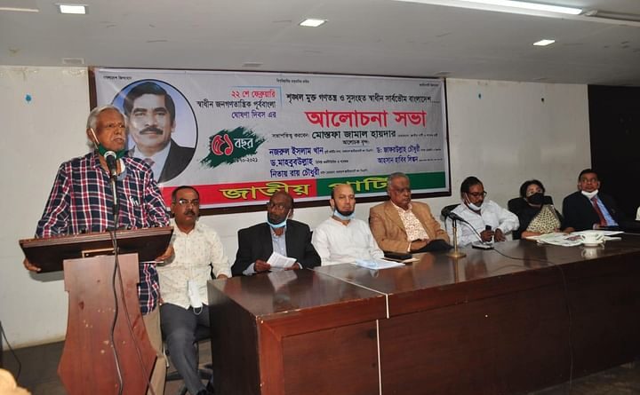 জাতীয় পার্টির (জাফর) চেয়ারম্যান মোস্তফা জামাল হায়দারের সভাপতিত্বে অনুষ্ঠানে আরও বক্তব্য দেন দলটির ভারপ্রাপ্ত মহাসচিব আহসান হাবীব, সভাপতিমণ্ডলীর সদস্য নওয়াব আলী আব্বাস খান, মজিবুর রহমান প্রমুখ।