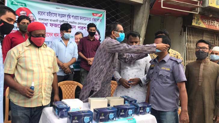 রাজধানীতে যুবলীগের মাস্ক ও সুরক্ষা সামগ্রী বিতরণ