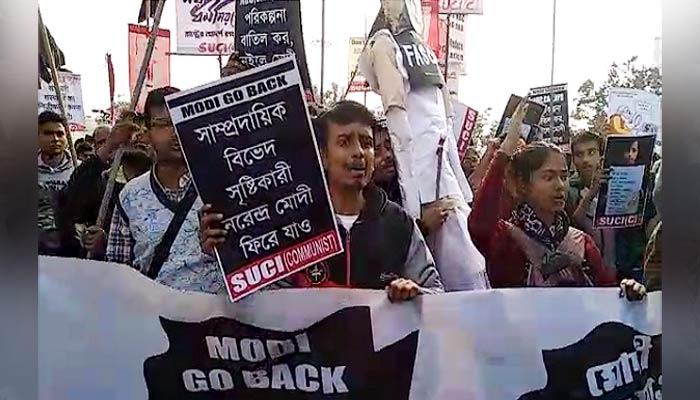 দু’দিনের সফরে শনিবার কলকাতায় এলেন ভারতের প্রধানমন্ত্রী নরেন্দ্র মোদি, আর তার মাঝে গর্জে উঠল কলকাতার রাজপথ। নাগরিকত্ব আইন, এনআরসি আর এনপিআরের বিরুদ্ধে ‘গো ব্যাক মোদি’ স্লোগানে সোচ্চার কলকাতার রাজপথ থেকে অলিগলি।