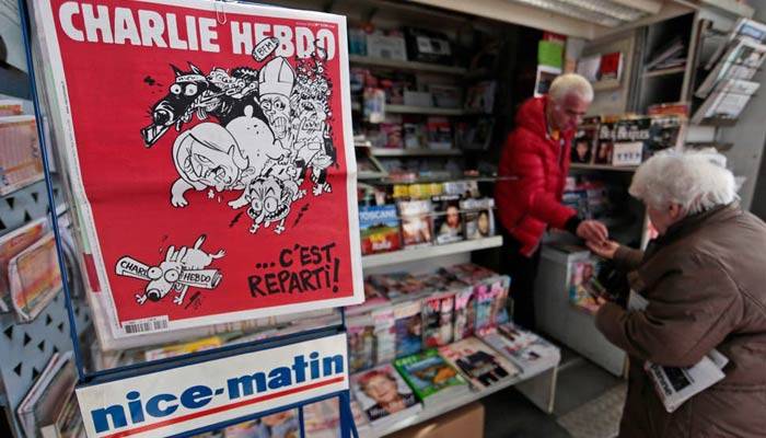 দুই ইসলামী চরমপন্থীকে হামলায় সহায়তার অভিযোগে ১৪ জনের বিচার শুরু হতে যাওয়ার আগের দিন স্থানীয় সময় মঙ্গলবার সাময়িকীটি এই কার্টুন ছেপেছে বলে বিবিসি জানিয়েছে।