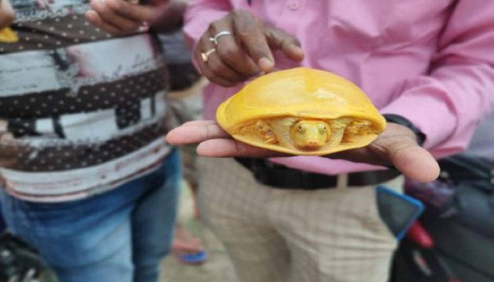 বিশেষজ্ঞরা ধারণা করছেন, জিনগত পরিবর্তন থেকে কচ্ছপটির গায়ের রং হলুদ হয়ে থাকতে পারে।